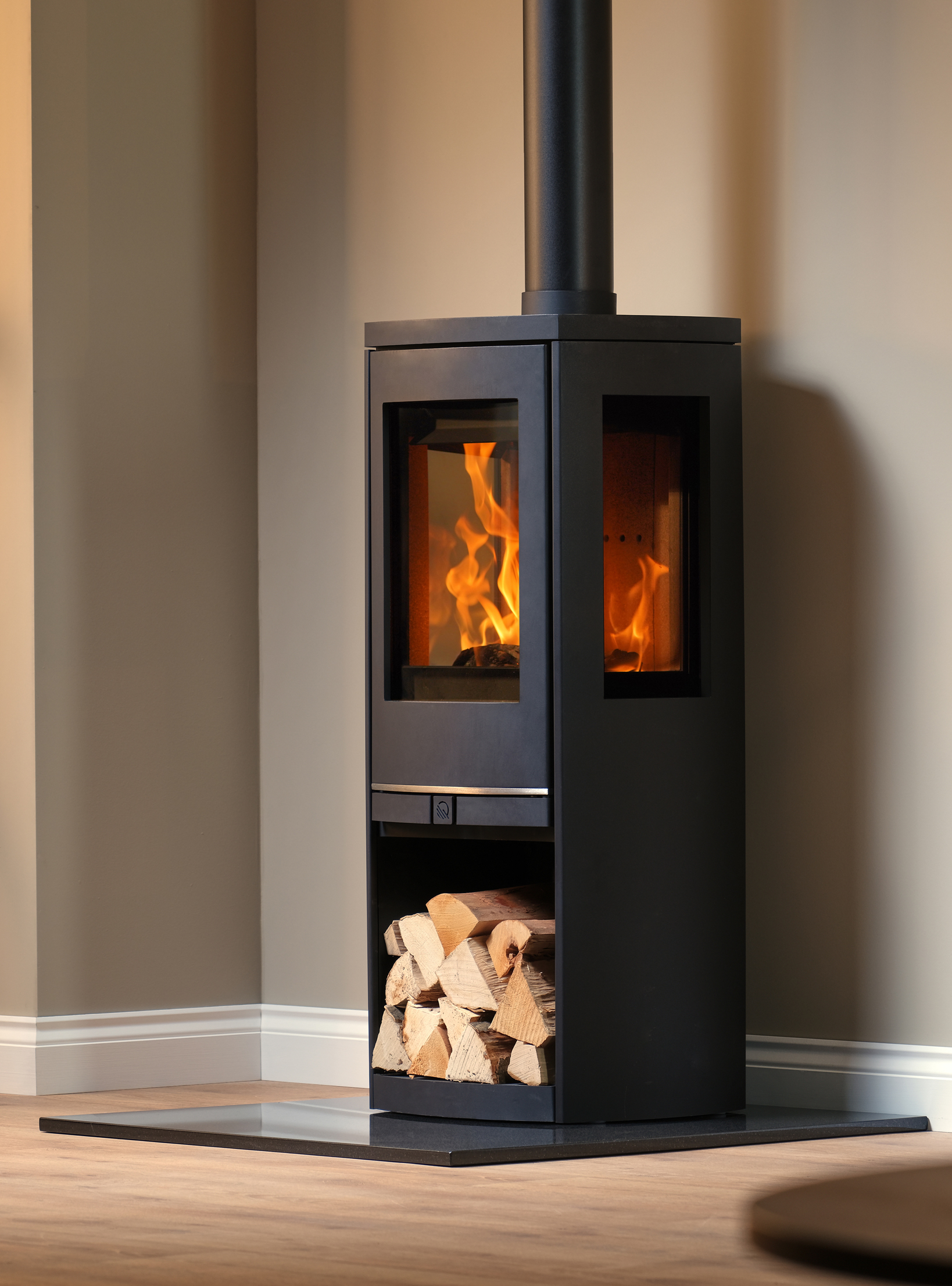The Qudos Collection presents a distinctive range of beautiful, cutting edge and innovative designs, born out of the vast experience that comes with developing and manufacturing the world’s finest quality fireplaces for over 70 years. Experience an entirely new concept in stove design that challenges what is possible and makes you completely rethink stove technology. The new Qudos Collection is the perfect range for those who wish to create the ultimate luxury fireplace and deliver extraordinary heating performance to your home. Responsible for transforming the humble stove into the prestigious focal point.